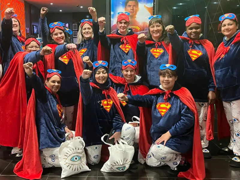 Of elkeen in haar eie pajamas of onesie opdaag en of julle groep dieselfde pajamas én #GirlsFliek-pantoffels dra – maak seker almal is reg vir ’n foto!