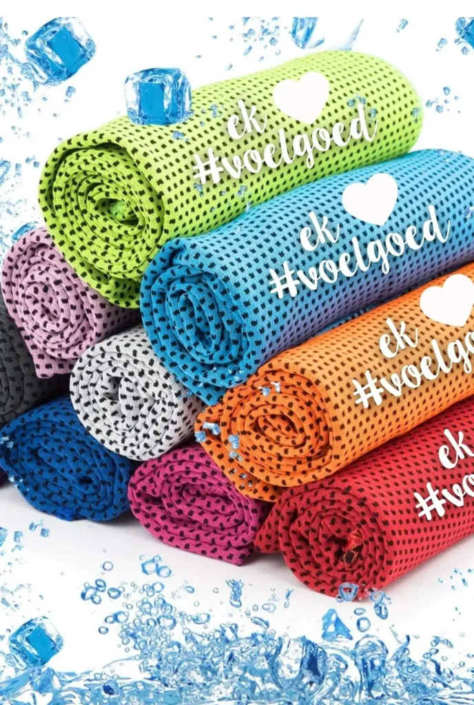 Die Ek lief #Voelgoed-koelhanddoek is uit gevorderde verkoelingsmateriaal vervaardig is, en ontwerp om gerieflik by jou te dra, sodat jy waar jy ook al gaan, altyd gemaklik en koel kan bly.