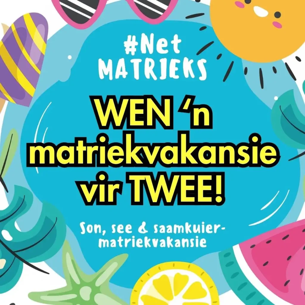 Koop ’n lootjie vir die #NetMatrieks-kompetisie – en wen ’n matriekvakansie vir TWEE – ter waarde van byna R10 000!